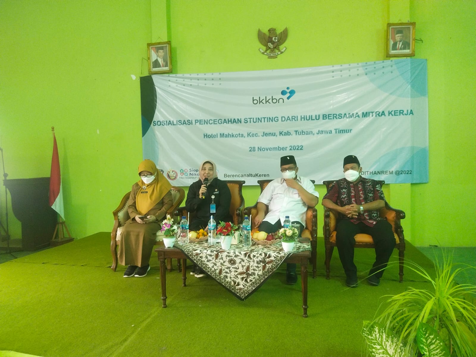 Untuk itu, dalam rangka membangun manusia Indonesia yang sehat, Badan Kependudukan dan Keluarga Berencana (BKKBN) terus aktif mensosialisasikan penurunan angka stunting. Kali ini, melalui Direktorat Bina Ketahanan Remaja BKKBN bersama H. Abidin Fikri, SH., MH. selaku Anggota DPR RI Komisi IX dari Fraksi PDIP mengadakan kegiatan sosialisasi pencegahan stunting dari hulu dalam rangka penguatan peran serta mitra kerja dan stakeholder dalam implementasi kegiatan prioritas pembangunan keluarga di Hotel Mahkota, Kecamatan Jenu, Kabupaten Tuban, Provinsi Jawa Timur, Senin (28/11/2022).