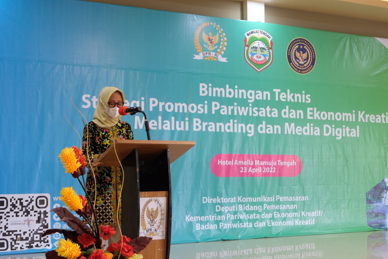 “Semoga dengan adanya bimtek ini akan melahirkan suatu konsep dan strategi dalam pengembanganPariwisata dan Ekonomi Kreatif, karena kami dari Disparpora Mamuju Tengah selalu berusah mendukung agar objek Pariwisata ataupun SDM dalam hal ini pelaku Ekraf bisa berkembang untuk pemulihan ekonomi. Adapun promosi yang dilakukan di bidang ini seperti memberikan bantuan alat dan sebagainya, sementara pada objek pariwisata kami berupaya memberikan fasilitas yang dibutuhkan namun masih terkendala pada terbatasnya pendanaan daerah. Sehingga melalui kesempatan ini kami berharap ada angin segar dari Kemenparekraf berupa bantuan baik moril dan materil,” terang Hj. Nahda.