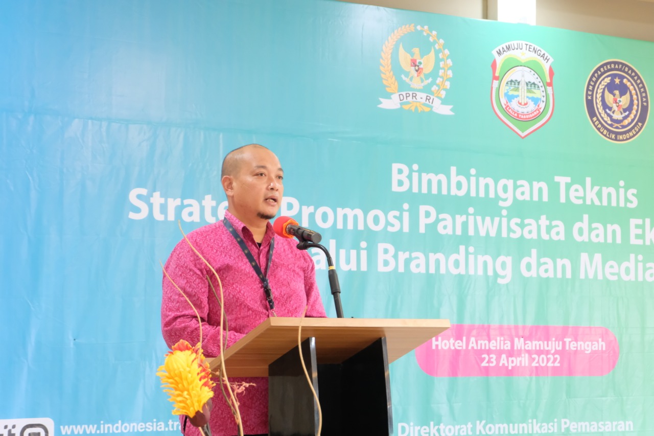 Kegiatan yang diikuti ratusan peserta ini mengusung tema “Strategi promosi destinasi pariwisata, dan ekonomi kreatif melalui media digital.” Turut hadir dalam acara ini yaitu Dedi Ahmad Kurnia selaku Koordinator Strategi Komunikasi dan Kemitraan Kemeparekraf, Budi Rizanto Binol sebagai narasumber dan konsultan branding, Hj. Nahda, S.Kep, MM selaku Kepala Disparpora Kabupaten Mamuju Tengah, serta perwakilan Pelaku Usaha Pariwisata dan Ekonomi Kreatif Se-Kabupaten Mamuju Tengah.