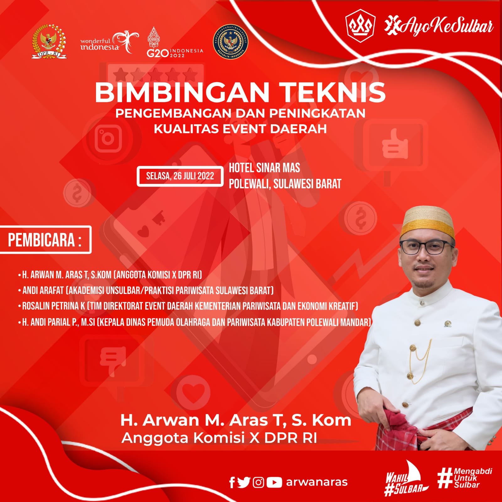 Anggota DPR RI Dapil Sulawesi Barat H. Arwan M. Aras T, S.Kom mengatakan bahwa dirinya sejak bertugas di Komisi X DPR RI, dirinya berusaha memberikan kontribusi untuk kemajuan pendidikan, kebudayaan, pariwisata, seni dan ekonomi kreatif (Ekraf) di Sulawesi Barat.