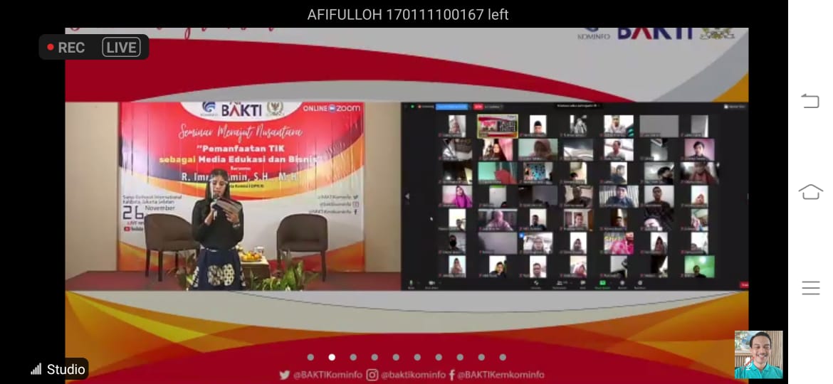“TIK merupakan teknologi informasi dan komunikasi, dimana kita bisa menyampaikan informasi melalui akun sosmed (Sosial Media). Di situ akan muncul komunikasi, baik antar daerah maupun wilayah,” ujar Imron dalam Web dan Seminar (Webinar) Merajut Nusantara dengan tema “Pemanfaatan TIK sebagai Media Edukasi dan Bisnis”, yang diselenggarakan Badan Aksesibilitas Teknologi dan Informasi (BAKTI) Kementerian Komunikasi dan Informatika (Kominfo), Kamis (26/11/2020).