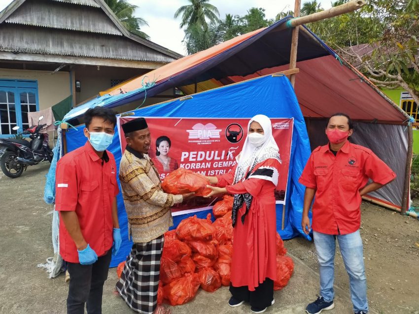 SwaraSenayan.com – Persaudaraan Isteri Anggota (PIA) DPR RI Periode 2019-2024 Fraksi Partai Demokrasi Indonesia Perjuangan (PDI-P) menggelar kegiatan Peduli Korban Gempa Sulbar dan menyambangi korban bencana di Kabupaten Majene dan Kabupaten Mamuju, Provinsi Sulawesi Barat. Kegiatan PIA DPR RI Fraksi PDI-P tersebut menyalurkan bantuan 600 paket kebutuhan pokok yang berisi beras 5 kg, minyak, susu, kopi, gula, indomie, softex per paketnya. Di Kabupaten Mamuju bantuan tersebut disalurkan di Kecamatan Tapalang dan Kecamatan Tapalang Barat. Sedangkan di Kabupaten Majene bantuan dari PIA DPR RI itu disalurkan di Kecamatan Malunda.
