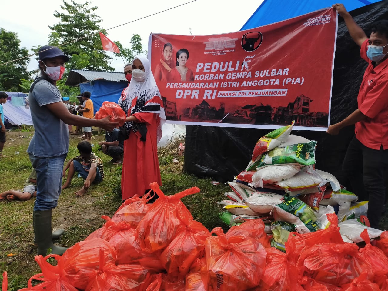 SwaraSenayan.com – Persaudaraan Isteri Anggota (PIA) DPR RI Periode 2019-2024 Fraksi Partai Demokrasi Indonesia Perjuangan (PDI-P) menggelar kegiatan Peduli Korban Gempa Sulbar dan menyambangi korban bencana di Kabupaten Majene dan Kabupaten Mamuju, Provinsi Sulawesi Barat. Kegiatan PIA DPR RI Fraksi PDI-P tersebut menyalurkan bantuan 600 paket kebutuhan pokok yang berisi beras 5 kg, minyak, susu, kopi, gula, indomie, softex per paketnya. Di Kabupaten Mamuju bantuan tersebut disalurkan di Kecamatan Tapalang dan Kecamatan Tapalang Barat. Sedangkan di Kabupaten Majene bantuan dari PIA DPR RI itu disalurkan di Kecamatan Malunda.