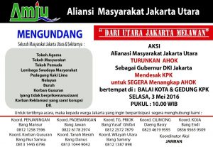 Serukan Aksi Penolakan Terhadap Ahok, Aliansi Masyarakat Jakarta Utara Bersatu Bakal Turun ke Jalan