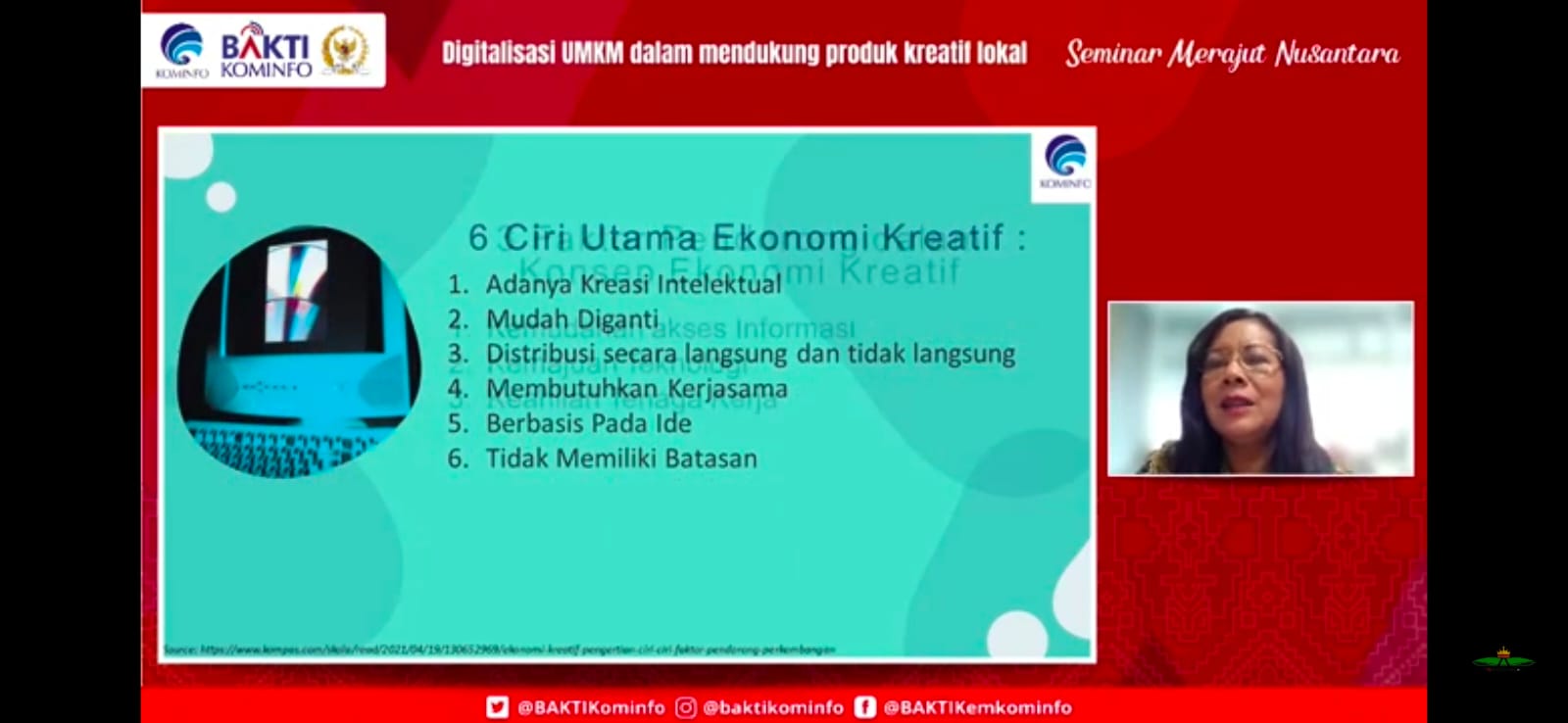 “Indonesia masuk ke dalam derasnya arus informasi yang dipacu oleh kemajuan TIK, kemajuan tersebut harus dimanfaatkan untuk menguatkan dan mendukung UMKM,” kata Krisantus selaku narasumber pada Seminar Merajut Nusantara yang diselenggarakan oleh BAKTI Kementerian Kominfo dengan tema ‘Digitalisasi UMKM dalam Mendukung Produk Kreatif Lokal’, secara virtual, Jakarta (23/02/2023).