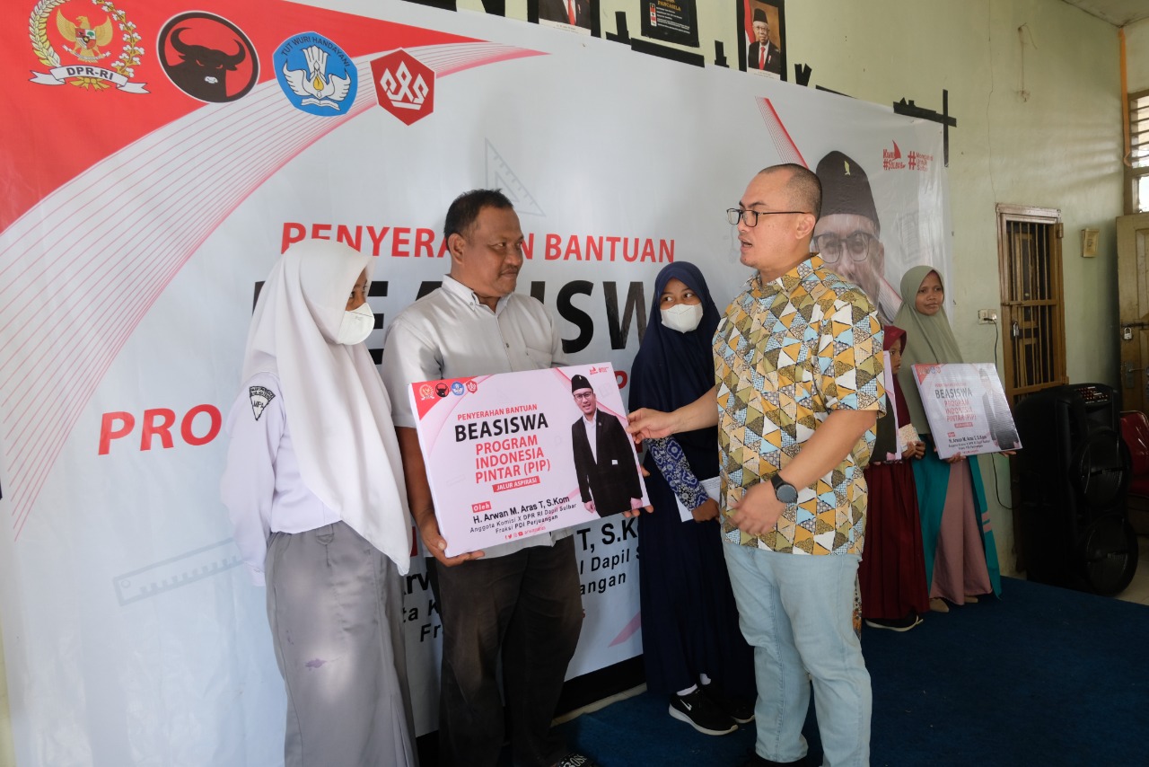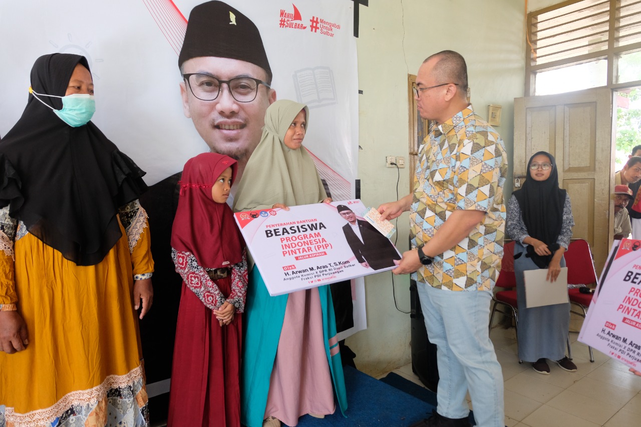 Bantuan Beasiswa PIP SD/SMP/SMA/SMK Jalur Aspirasi yang disalurkan Arwan Aras di Mamuju Tengah sebanyak 5604 siswa. Terdiri atas SMA sebanyak 909 siswa, SMK sebanyak 324 siswa, SMP sebanyak 1906 siswa, dan SD sebanyak 2465 siswa.