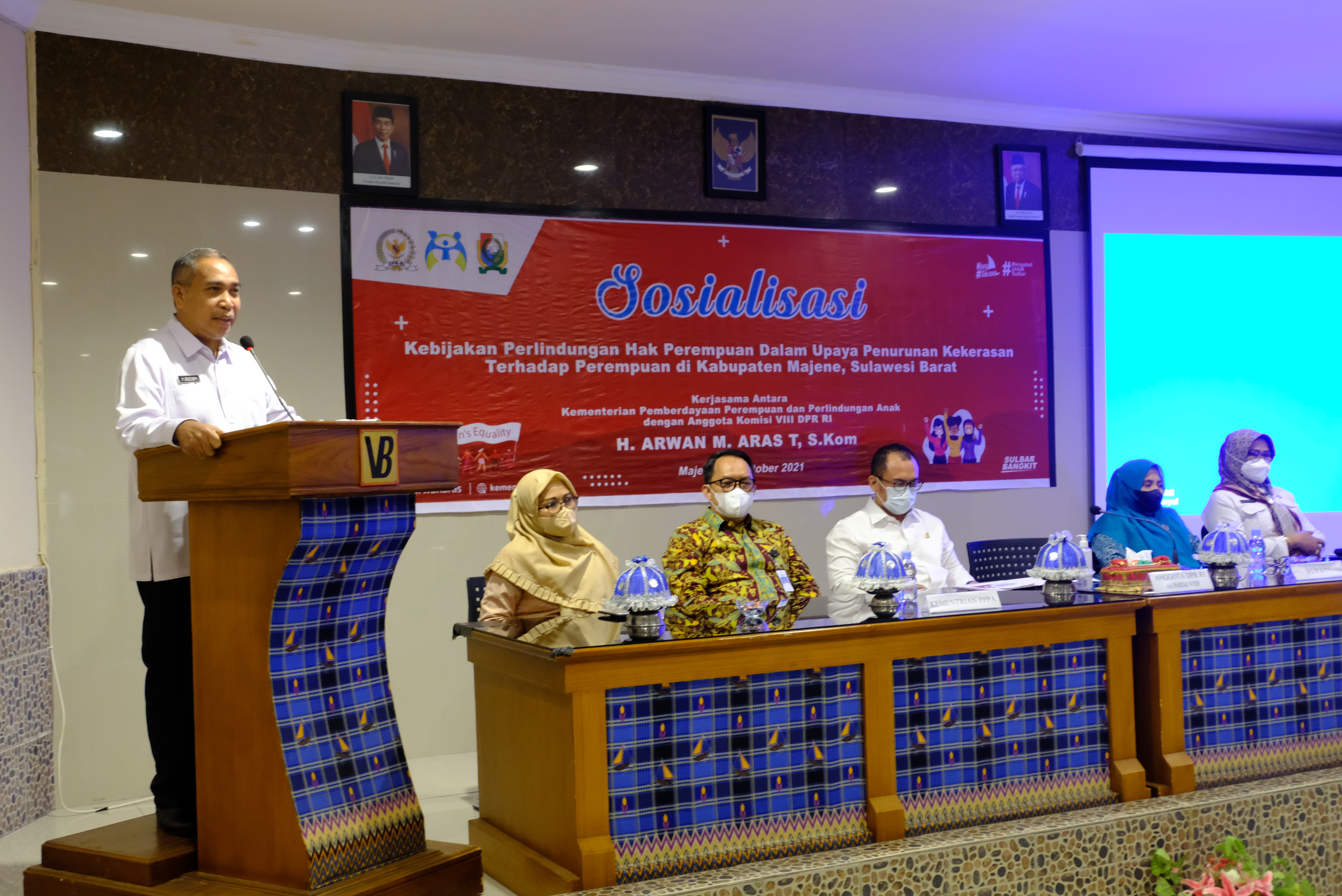 Bupati Majene dalam sambutannya yang dibacakan Staf Ahli Bupati Bidang Pendidikan, Sosial, dan Kebudayaan Drs. H. Mustamin mengatakan ucapan dan penghargaan terima kasih kepada Anggota Komisi VIII yang menginisiasi kegiatan sosialisasi ini.