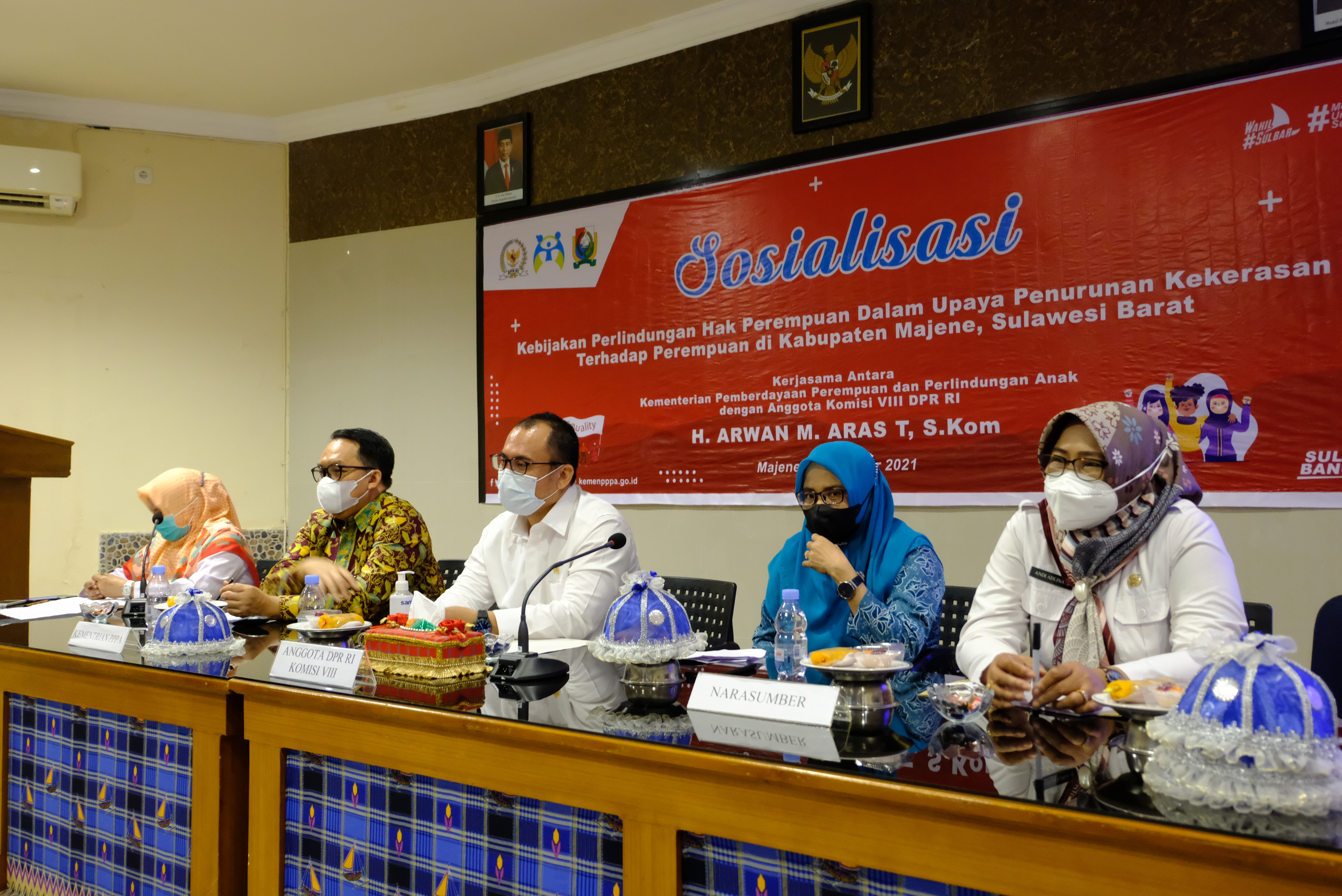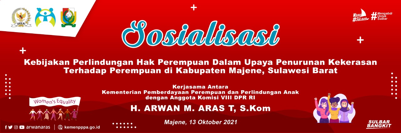 SwaraSenayan.com – Anggota DPR RI Fraksi PDI Perjuangan dari Daerah Pemilihan (Dapil) Sulawesi Barat, H. Arwan M. Aras T, S.Kom Bersama Kementerian Pemberdayaan Perempuan dan Perlindungan Anak (Kemen PPPA) menggelar Sosialisasi Kebijakan Perlindungan Hak Perempuan Dalam Upaya Penurunan Kekerasan Terhadap Perempuan di Aula Hotel Villa Bogor, Kabupaten Majene, Sulawesi Barat pada Rabu (13/10/2021).