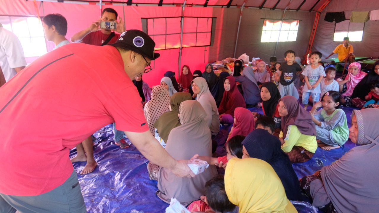 Arwan Aras juga menyapa masyarakat yang terdampak banjir di tenda-tenda pengungsian dan berharap bahwa masyarakat tetap waspada terhadap dampak dari bencana alam.