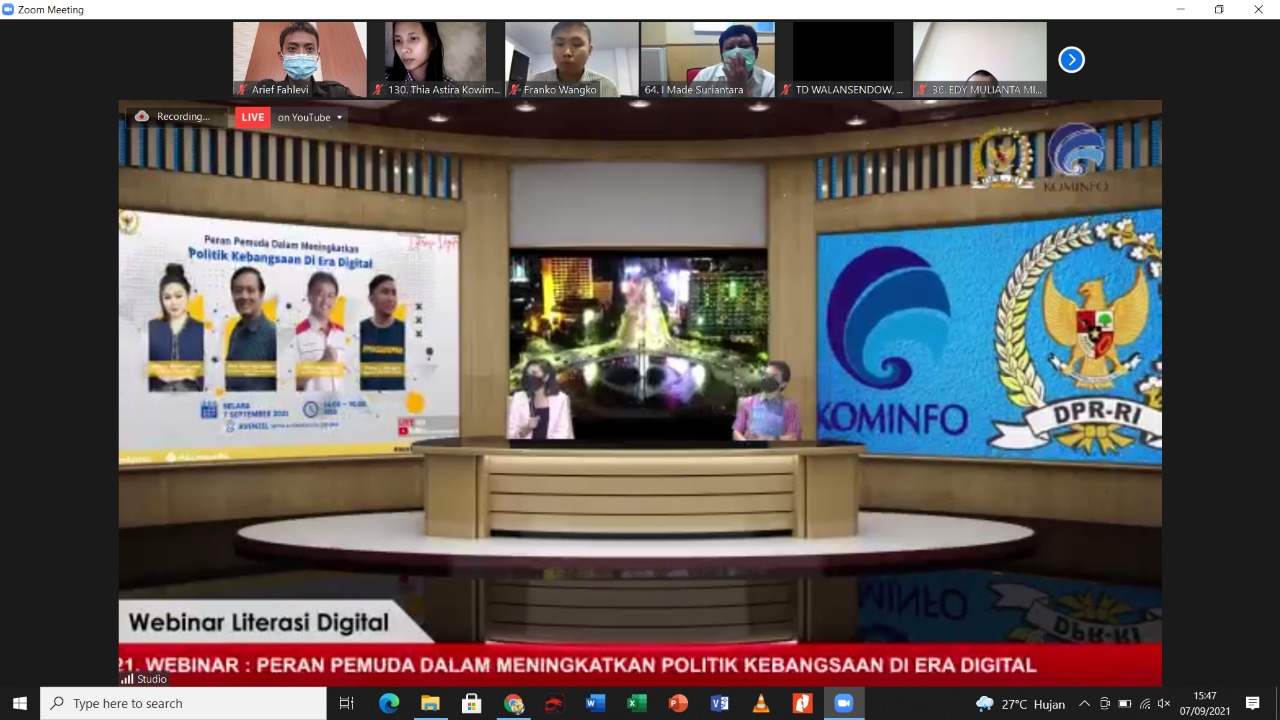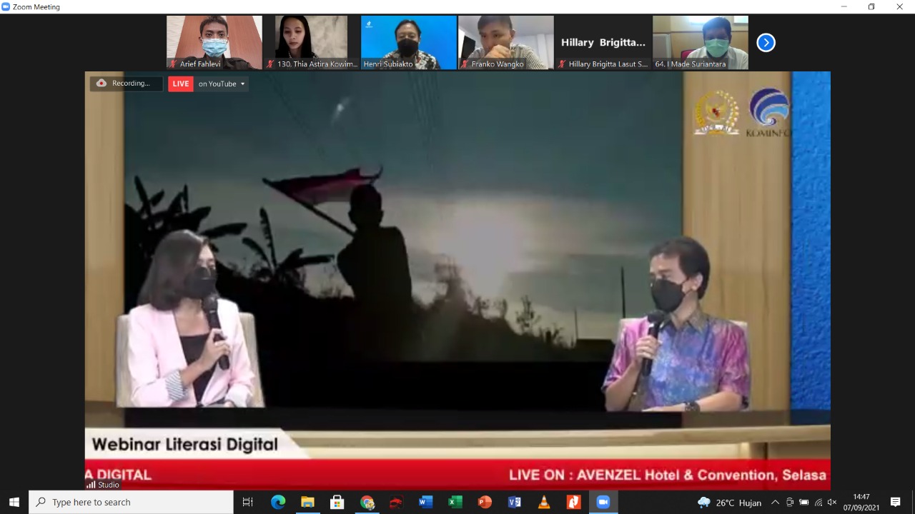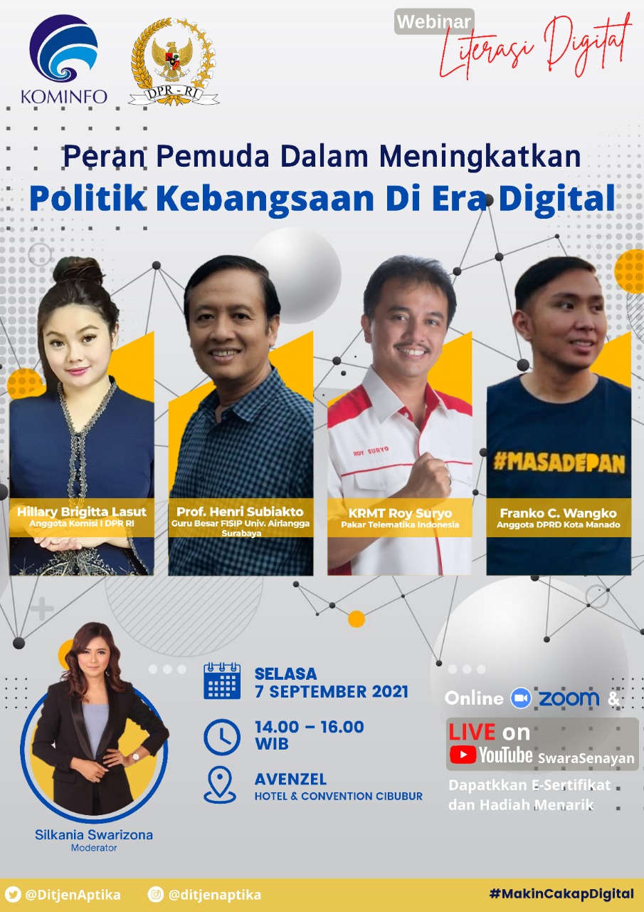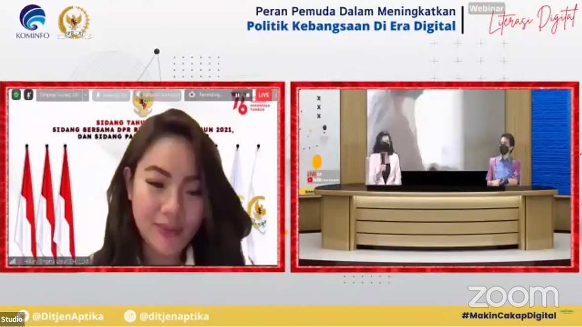 Demikian yang disampaikan oleh Anggota Komisi I DPR RI, Hillary Brigitta Lasut, S.H., LL.M  selaku narasumber pada Webinar Literasi Digital yang digelar oleh Ditjen APTIKA Kominfo dengan tema “Peran Pemuda dalam Meningkatkan Politik Kebangsaan di Era Digital” secara virtual, Jakarta (07/09/2021).