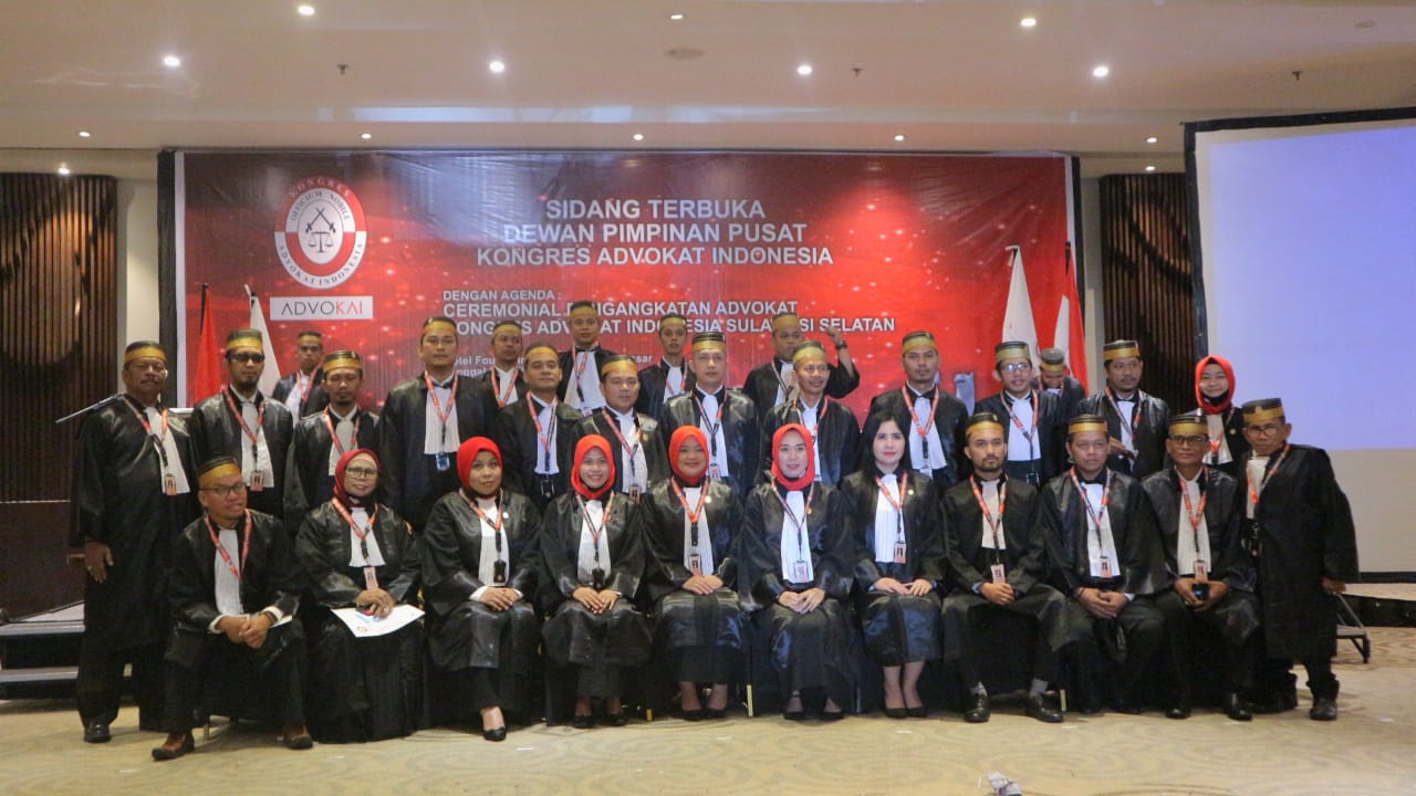Sebelumnya, pada Kamis (16/7) peserta pengukuhan tersebut telah diambil sumpah menurut agamanya dalam Sidang Terbuka Pengadilan Tinggi Sulawesi Selatan sebagaimana diatur dalam UU Advokat.